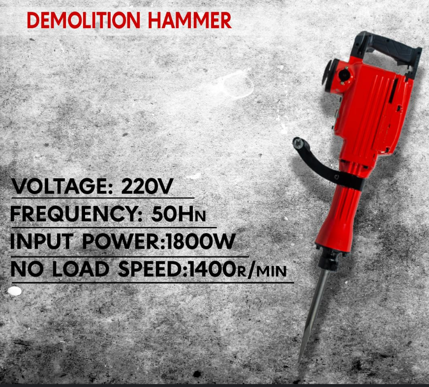 A PKGLOBAL PS65 16KG breaker machine is a heavy-duty demolition hammer used for tasks like breaking concrete, demolition of walls, chiseling tiles, and removing old foundations in construction and renovation projects. It features a robust design for handling tough materials, an ergonomic grip with an auxiliary handle for user comfort, and typically comes with various bits (like pointed and flat bits) for versatile demolition applications